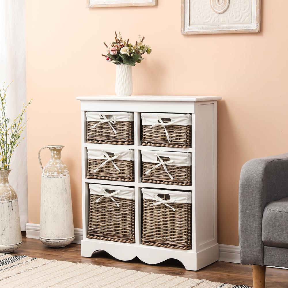 Luxen Home 30 1 In H White Wood Cabinet With 6 Drawer Baskets Whif912 The Home Depot