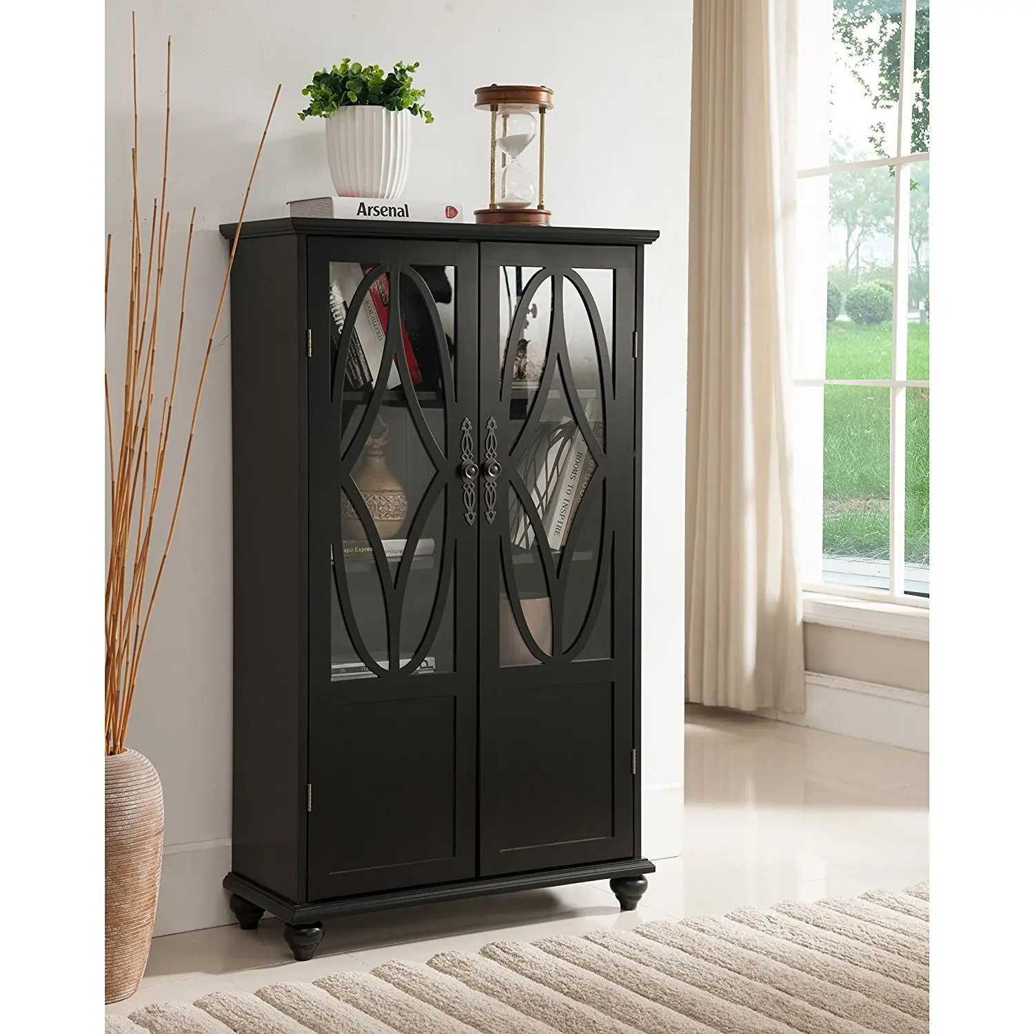 Five glass shelves offer plentiful display and storage space of your.