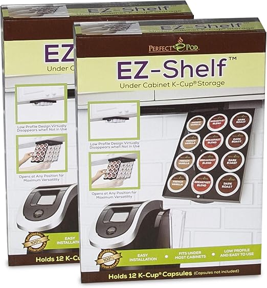 Amazon Com Ez Shelf By Perfect Pod Under Shelf Storage For K Cups Coffee Holder Compatible With Keurig K Cup Coffee Pods Space Saving Under Counter Cabinet Coffee Pod Holder Kitchen Dining