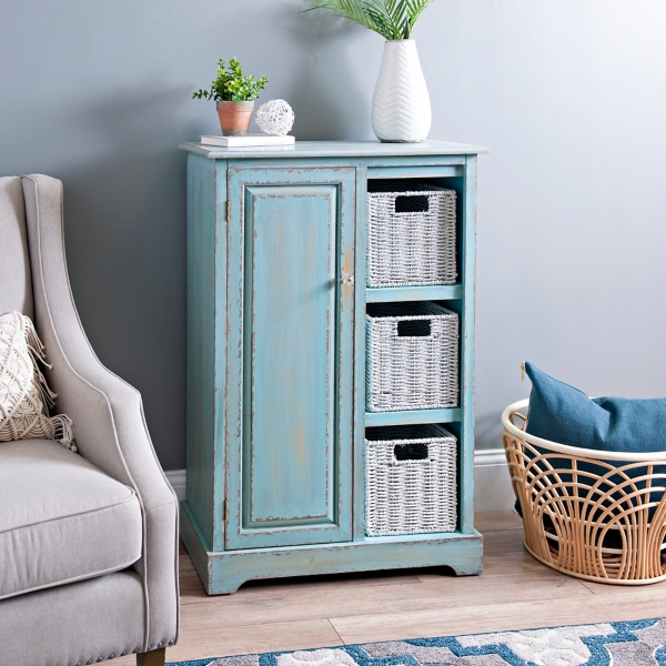 2020 Sales On Linon Amzn0282 Reed Distressed Turquoise Single Door Cabinet