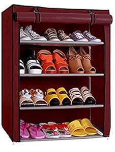 Homefort 4 Tier Shoe Rack Shoe Tower 20 Pair Shoe Storage Organizer Stackable Unit Multifunctional Entryway Shelf With Metal Durable Shelves Black Amazon Ca Home Kitchen