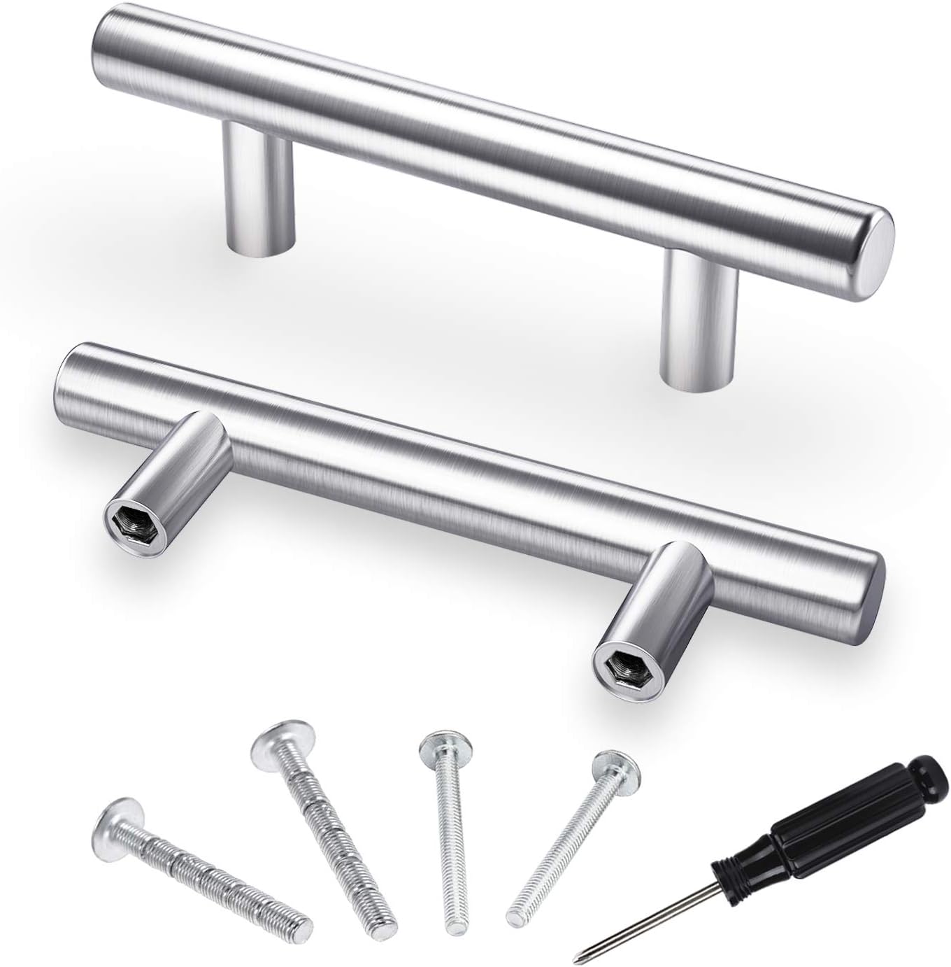 Most kitchen cabinet handles include screws for simple installation, so you can quickly attach them when settling into a new house or apartment.