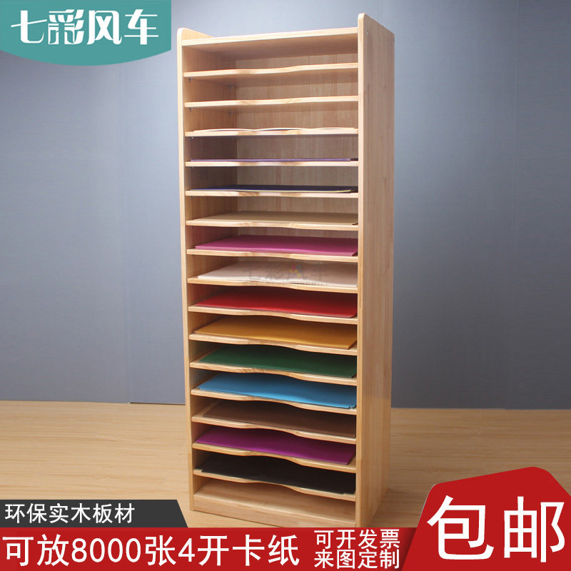 Studio Solid Wood Paper Cabinet 4 Open Cardboard Storage Cabinet Multi Function Paper Storage Rack 16 Layer Paper Holder