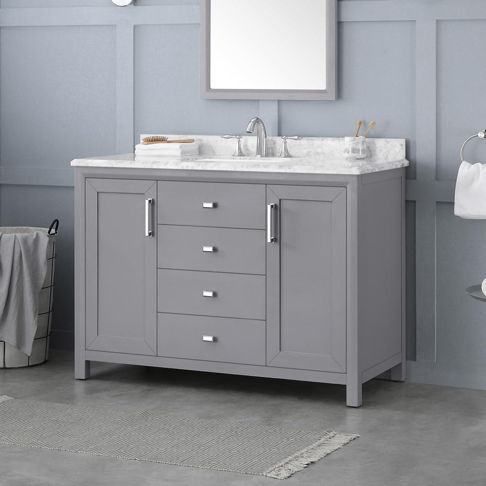 Home Decorators Collection Rockleigh 60 In W X 22 In D Bath Vanity In Pebble Grey With Marble Vanity Top In Carrara White With White Basin Rockleigh 60pg Marble Vanity Tops Bath