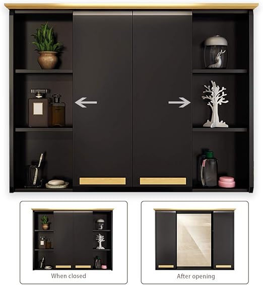 Bathroom Mirror Round Cabinet Bathroom Wall Storage Cabinet Sliding Mirror Medicine Cabinet With Steel Gliding Stainless Wooden Frame 3 Level Amazon Co Uk Kitchen Home