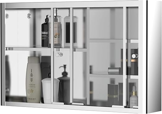 Amazon Com Kleankin 24 X 15 Wall Mounted Bathroom Medicine Cabinet Sliding Door With Storage Shelves Stainless Steel Silver Home Kitchen