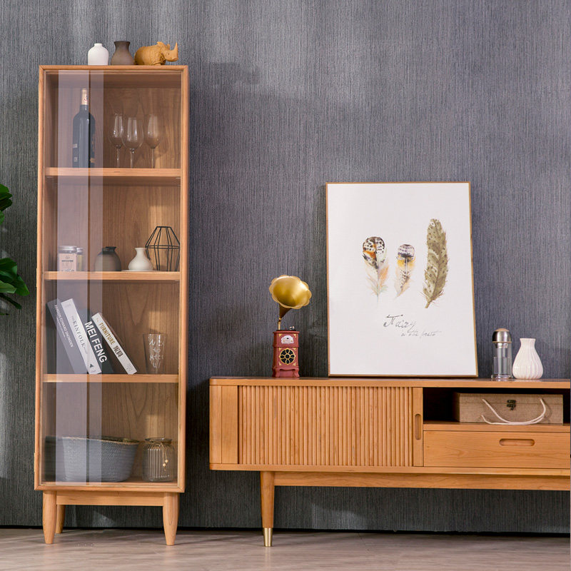 Nordic Oak Cabinet Storage Cabinet Storage Cabinet Black Walnut Glass Door Japanese Tv Side Cabinet Multi Functional Cabinet