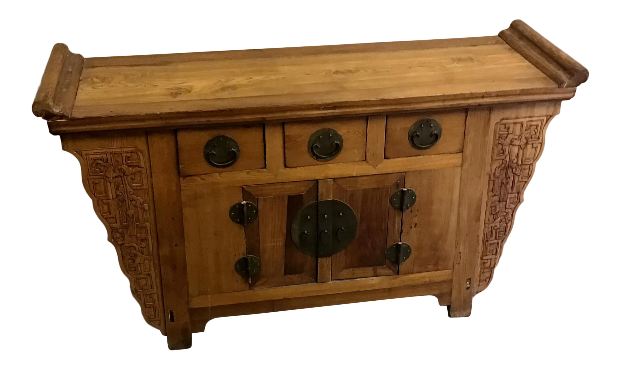 Chinese Antique Carved Altar Cabinet With Everted Flanges Doors And Drawers For Sale At 1stdibs