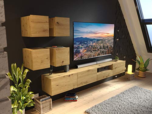 Tv Cabinet Ventti Artisan Oak Black Matt Furnitop Co Uk