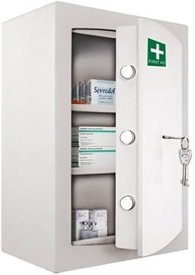 Lockable medicine cabinet, locking storage medical cabinet, combination locking medicine cabinet, first aid supplies.