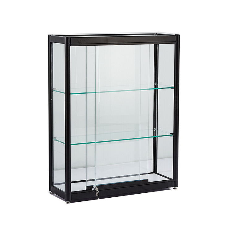 Aluminium Glass Countertop Display Cabinet With 2 Shelves
