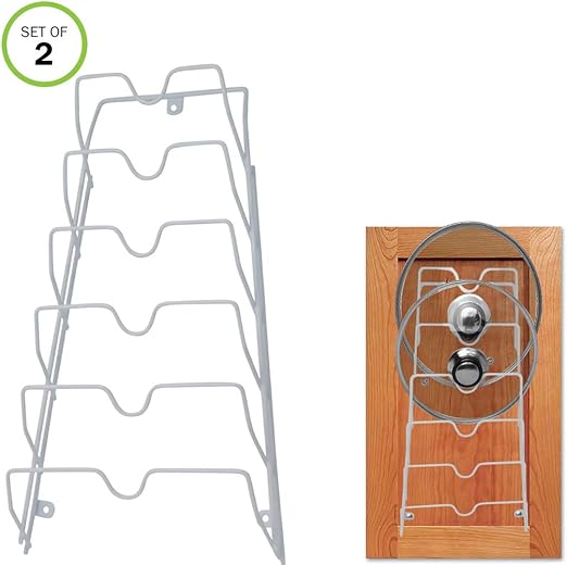 Mounted Pot Lid Rack Organizer For Cabinets Or Doors Fits 5 Lids