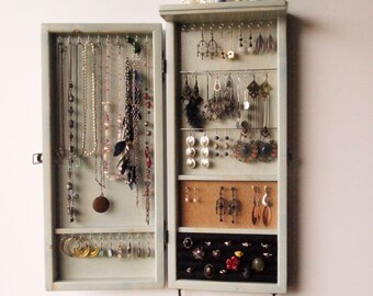 Jewelry Wall Cabinet Etsy. A perfect wall mounted jewelry cabinet should have ample space that will occupy all your things. Join me as i make a jewelry. It is designed for your valuables and keeps your jewelry organized as well as prevents it from getting tangled. A wide variety of wall mount jewelry cabinet options are available to you, such as general use, wood style, and material. Today i build my wife a jewelry cabinet from brazilian cherry hard wood floor pieces. C $328.34 to c $433.73. Check out our wall mount jewelry cabinet selection for the very best in unique or custom, handmade pieces from our storage & organization shops. Most of the jewelry cabinets have a maximum of 80 pockets. Once you open the cupboard, your jewelry is clear at a glance. A wall mounted jewelry cabinet made from a durable material will save you the cost of buying new products time by time. The hardwood was left over from install. Enjoy free shipping on most stuff, even big stuff. 51 results for wall mounted jewelry cabinet. Modern geometric wood lighted wall mount jewelry amoire cabinet storage. Shop wayfair for all the best wall mounted jewelry armoires & organizers.