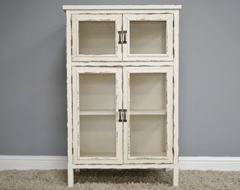 Wood Display Cabinet Storage White Distressed Glass Door Cottage Cupboard Rustic For Sale Online Ebay