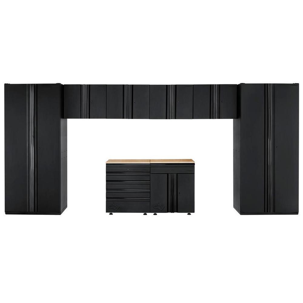 Husky Welded 163 In W X 75 In H X 19 In D Steel Garage Cabinet Set In Black 10 Piece With Stainless Steel Work Surface Gs16210 3wss The Home Depot