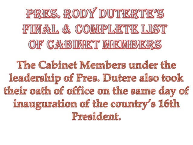 Duterte Cabinet Members Complete List Of Cabinet Members Under Duterte Presidency